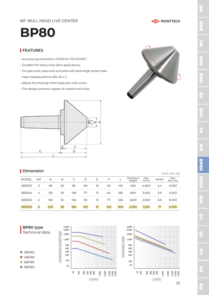 80° Bull Head Live Center MT6 – 6BP80 (#083006)