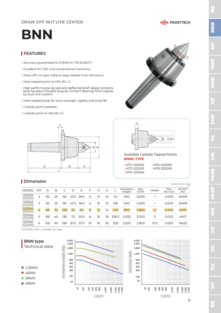 CNC Live Center with Draw-off Nut MT4 – 4BNN (#021004)