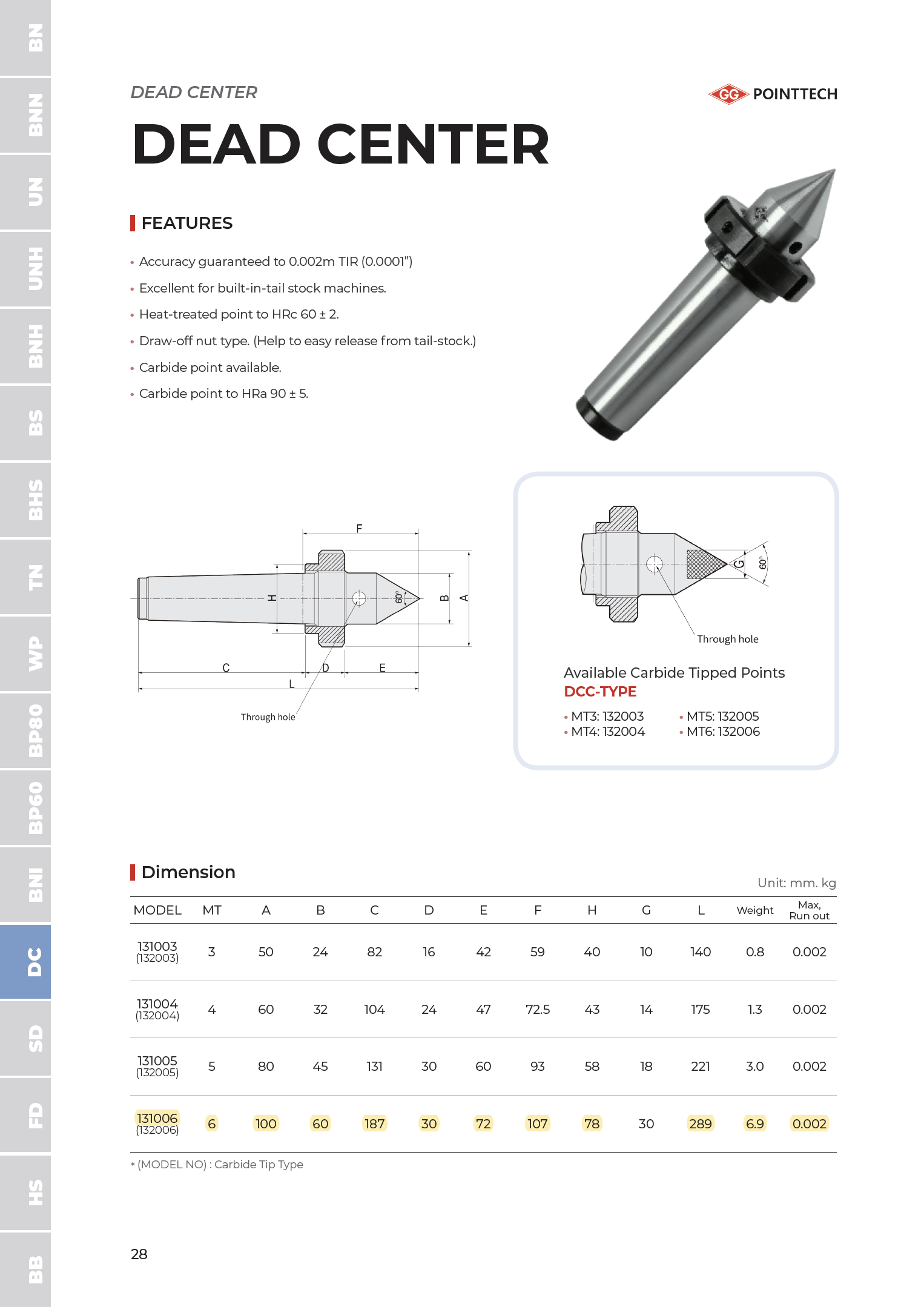 | Product Series | Dead Centers |