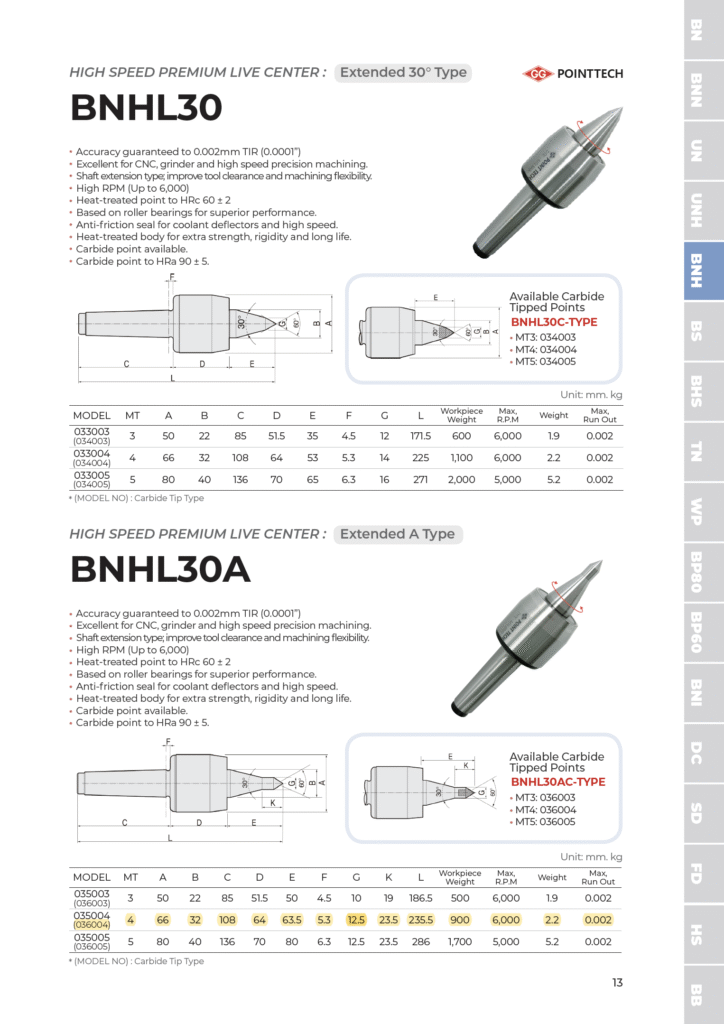 Extra-Extended Carbide High Speed Premium Live Center MT4 – 4BNHL30AC (#036004)