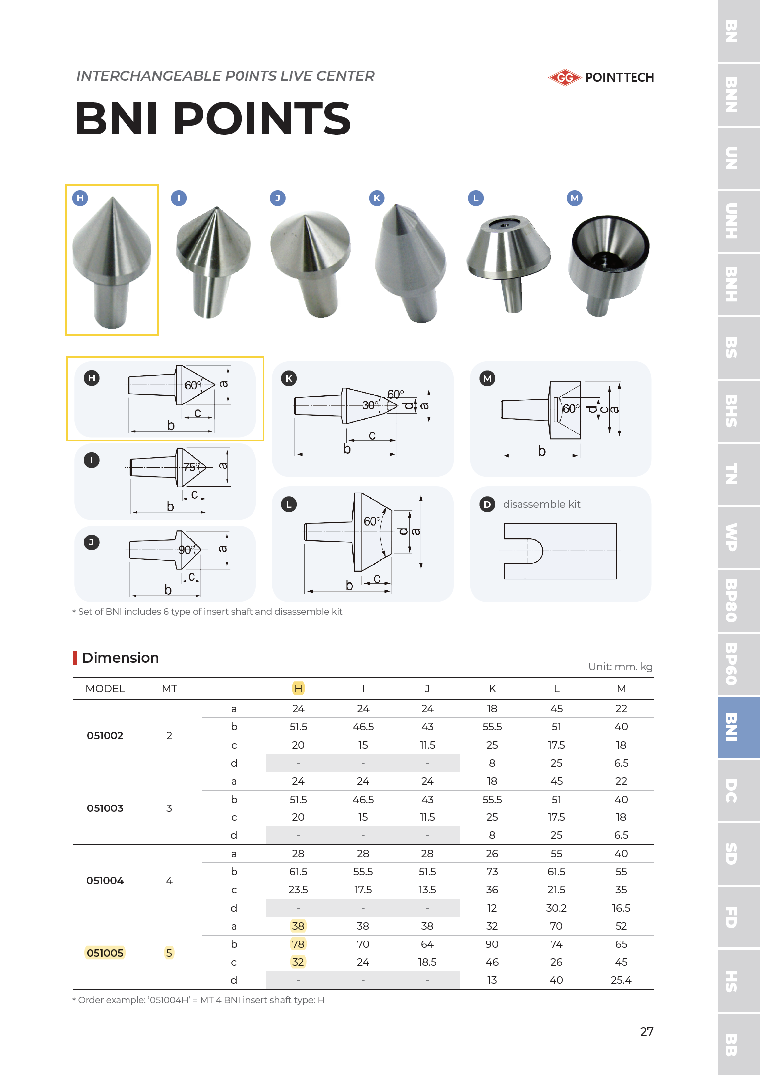 60° interchangeable point of BNI type.