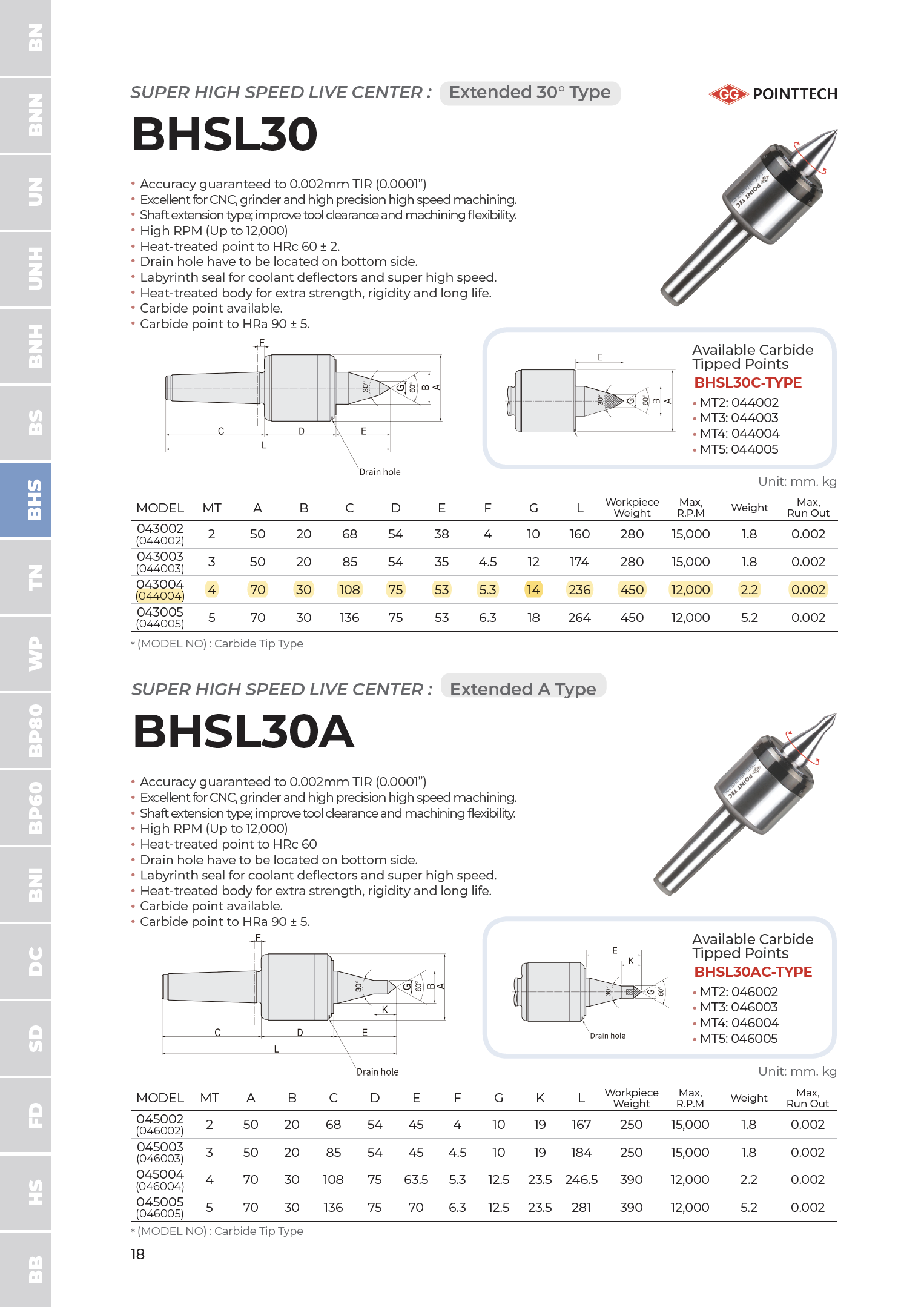 BHSL30 type with Carbide tip point.