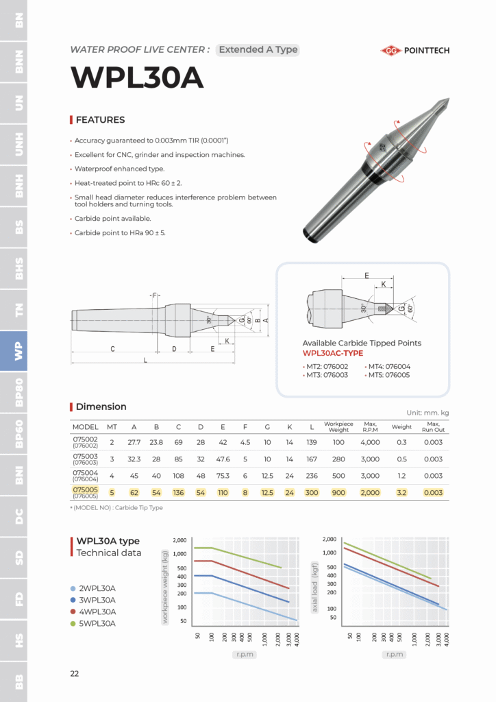 Extra-Extended Water Proof Live Center MT5 – 5WPL30A (#075005)Extra-Extended Water Proof Live Center MT5 – 5WPL30A (#075005)